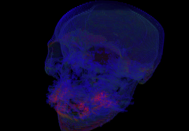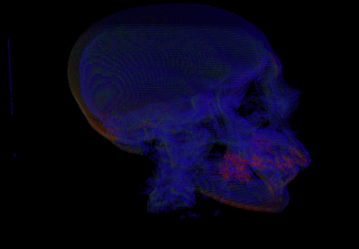 It’s not pretty, and in fact it’s really not pretty when you make it 3D due to the low input resolution of the scan. But there it is! The same CT Scan now rendered in 3D in OpenGL. I used the Java bindings for OpenGL (JOGL) so I could use the same loader code I wrote in 2nd year to parse the binary CT file into a 3D array of shorts.